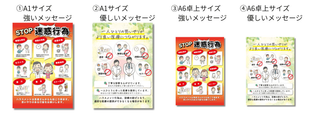 お知らせ コンテンツ コンテンツ追加!『ペイシェントハラスメント啓発ポスター』(会員限定ページ) 2025年9月12日 2025年10月17日 Facebook post 会員限定ページ(無料)に、新しいコンテンツを追加しました! ↓新規登録・ログインはこちら↓(医療従事者を対象としております) ★ペイシェントハラスメント啓発ポスター ✓無料でダウンロード可能✓ご施設名を入れることもできます✓A1サイズ、A6卓上サイズをご用意✓優しいor強いメッセージの2種類をご用意 <ポスター見本>※クリックで拡大します メルマガ会員の皆様にアンケートさせていただいたコンテンツ、『ペイシェントハラスメント啓発ポスター』が完成し、会員限定ページに公開しました!アンケートにご協力いただいた皆様、ありがとうございました。 回答いただいた79%の方が「啓発ポスターは必要」という結果に!ぜひ、ご活用ください! ↓新規登録・ログインはこちら↓(医療従事者を対象としております) Facebook post