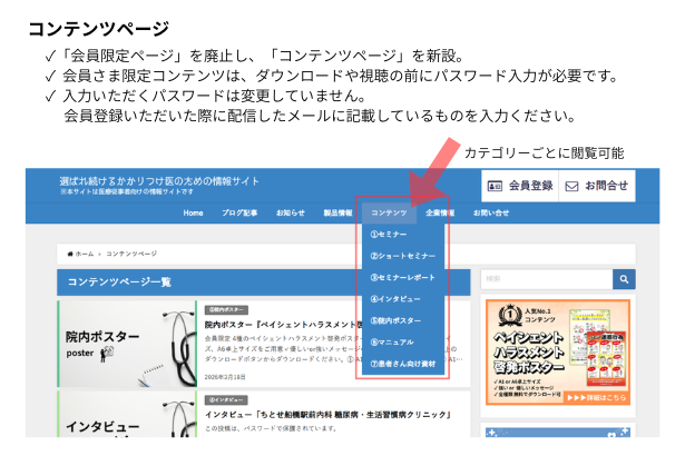 会員限定コンテンツのダウンロードや視聴のためのパスワードは変更ございません。