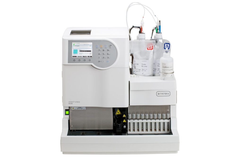 アークレイではこれまで培った技術を結集して、HbA1cとグルコースを一台で同時測定できるアダムスハイブリッドAH-8290を開発いたしました。