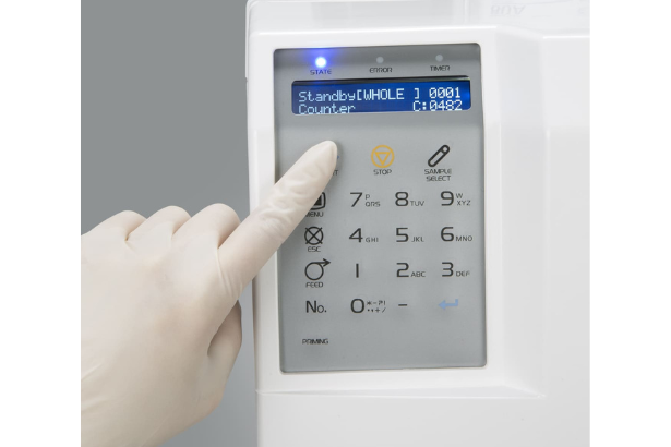 ゴムキャップ付採血管をそのままセットできるキャップピアス方式を採用しました。これにより測定操作をする方の感染予防に大きく貢献します。