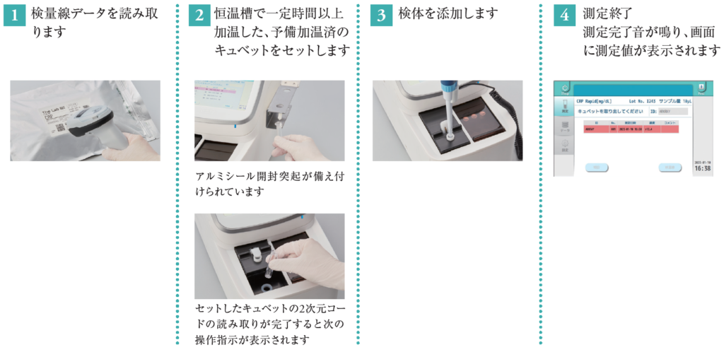 | 測定対象 | CRP:全血、血清、血漿 CRP Rapid, CRP Rapid low:血清、血漿 α1-AGP:血清、血漿 Hp:血清、血漿 |